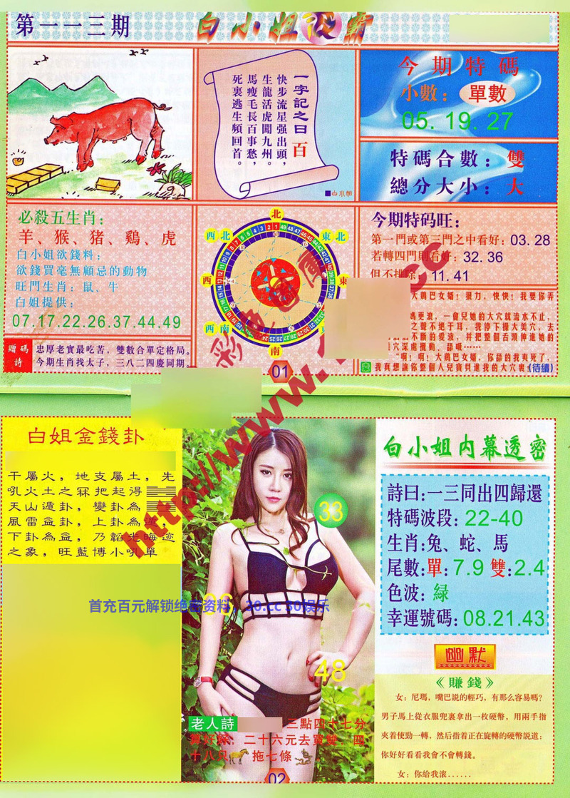 105期:九肖【牛蛇猴马龙虎鼠羊】开:狗44准